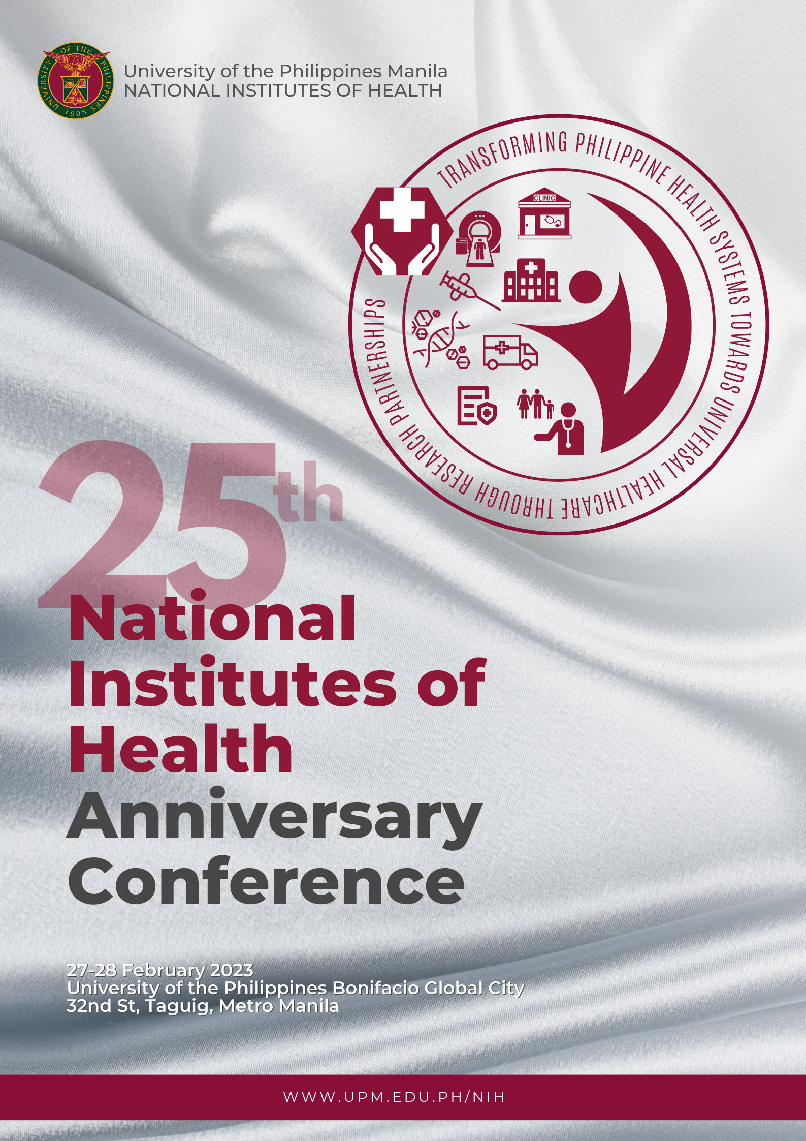 On February 27 and 28, 2023, the University of the Philippines National Institutes of Health (UP-NIH) will celebrate its 25th founding anniversary with an exciting and timely symposium on the role of health research in pursuit of universal healthcare for Filipinos.